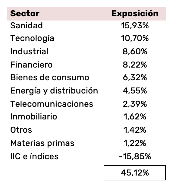 La cartera se mantiene muy diversificada, tanto geográficamente como sectorialmente. Hay que resaltar que vamos manteniendo un gran peso en Estado Unidos. Por otro lado, dada la calidad de las empresas del sector sanidad, y aprovechando sus correcciones, hemos aumentado sus posiciones, y ya es el de mayor peso (por encima del sector tecnológico).