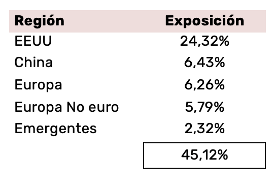 Por último, presentamos un cuadro resumen en el que se puede apreciar la exposición geográfica de la cartera: