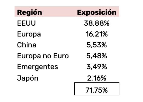 Por último, presentamos un cuadro resumen en el que se puede apreciar la exposición geográfica de la cartera: